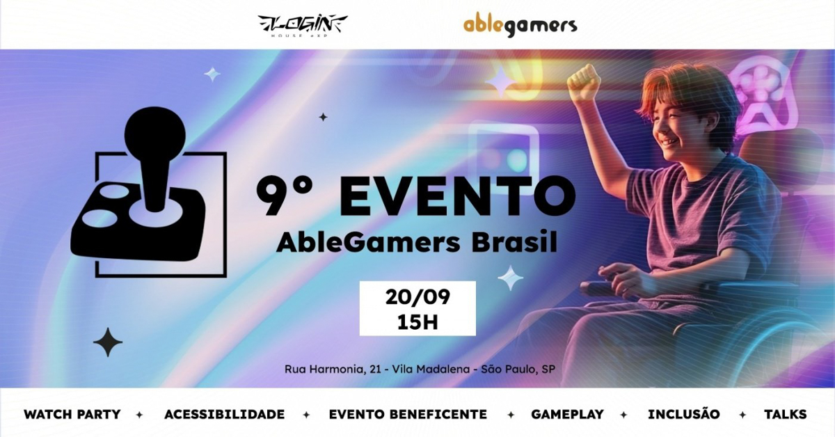 Neste próximo sábado, 20 de setembro, a AbleGamers Brasil realiza o AbleGamersBR 2025, a 9ª edição de seu evento anual beneficente que celebra a diversidade e a inclusão nos games. A iniciativa, que é o maior evento de acessibilidade em games no Brasil, busca divulgar o trabalho da ONG, conscientizar o público e arrecadar fundos para suas ações.